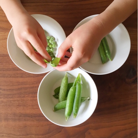グリンピースの皮むきは